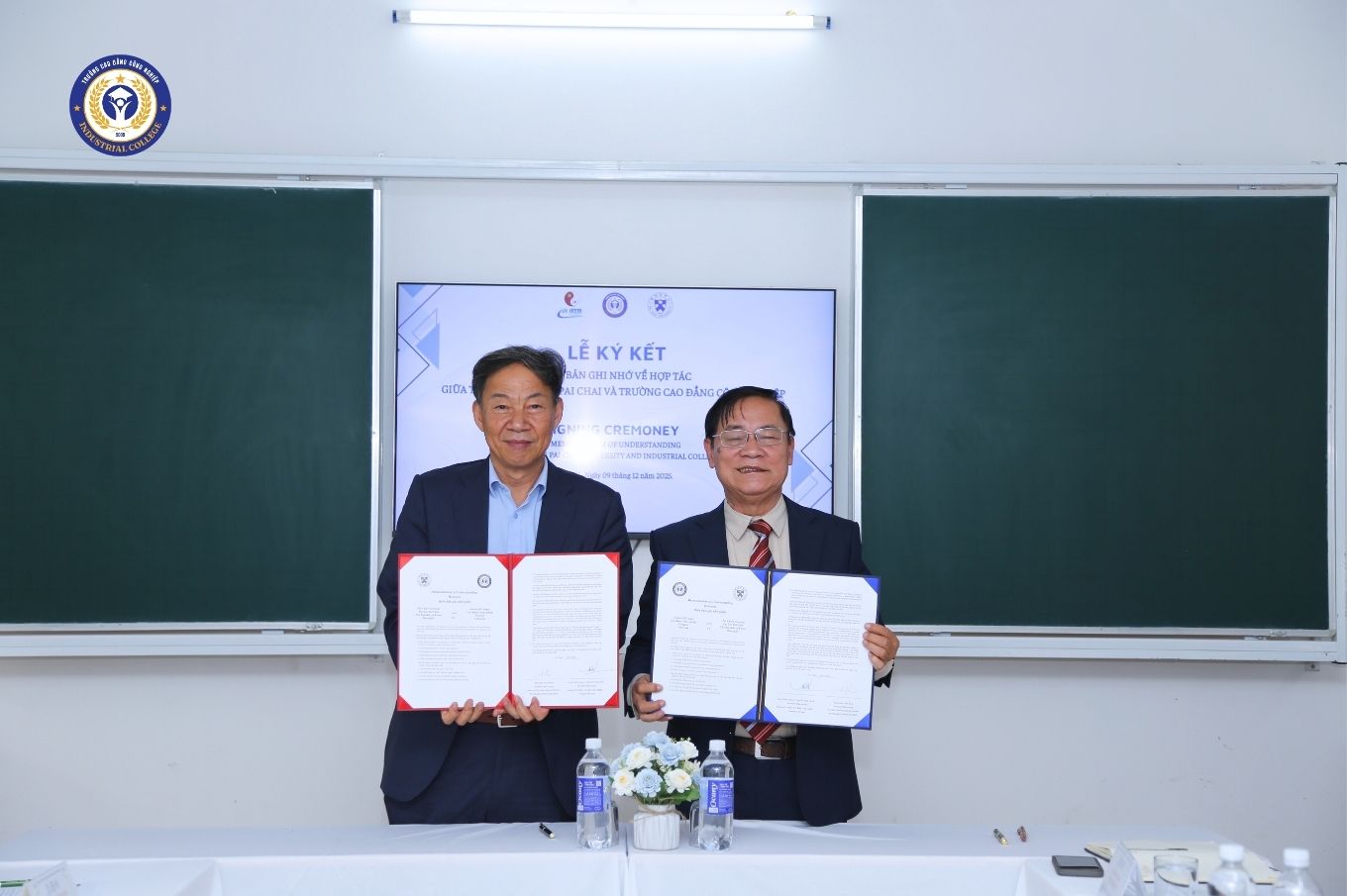 Lễ ký kết biên bản ghi nhớ hợp tác giữa Trường Đại học Pai Chai (Hàn Quốc) và Trường Cao đẳng Công Nghiệp Trong hành trình nâng cao chất lượng đào tạo và mở rộng hợp tác quốc tế, Trường Cao đẳng Công Nghiệp đã ghi dấu một bước tiến quan trọng khi long trọng đón tiếp đoàn đại biểu Trường Đại học Pai Chai – một trong những đại học có lịch sử lâu đời và uy tín hàng đầu tại Hàn Quốc. Ngày 09/12/2025 trở thành dấu mốc ý nghĩa khi hai nhà trường chính thức ký kết biên bản ghi nhớ hợp tác, mở ra nhiều cơ hội phát triển trong đào tạo, giao lưu học thuật và trao đổi sinh viên – giảng viên. Đây là bước khởi đầu quan trọng trong chiến lược hội nhập quốc tế mà Nhà trường đang theo đuổi.