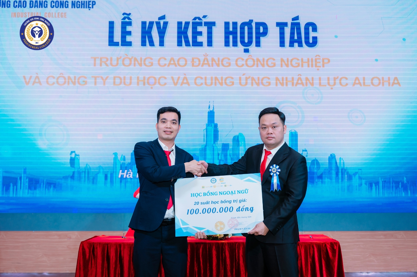Ngày 15/11/2025, Trường Cao đẳng Công nghiệp đã long trọng tổ chức Lễ ký kết hợp tác và trao học bổng với Công ty TNHH Du học & Cung ứng Nhân lực ALOHA.